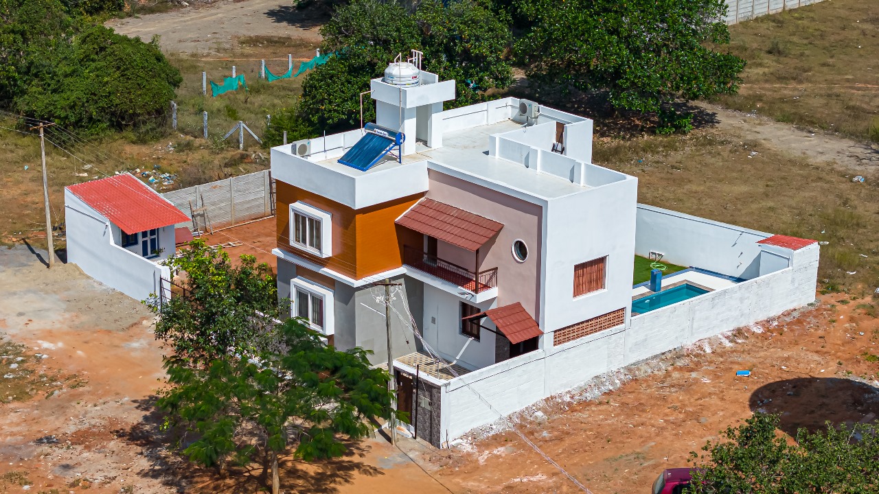 Our villa boasts:3 cozy and well-appointed bedrooms (3BHK) with air-conditioning for a relaxing atmosphere,A fully functional kitchen, allowing you to prepare meals with ease and enjoy a homely experience,A solar water heater for eco-friendly and efficient hot water access throughout your stay,Spacious parking to accommodate your vehicles conveniently.